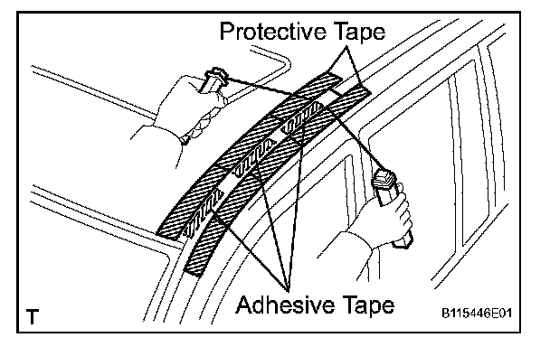 4. Hold the glass in place securely with protective tape or equivalent until the adhesive hardens.
