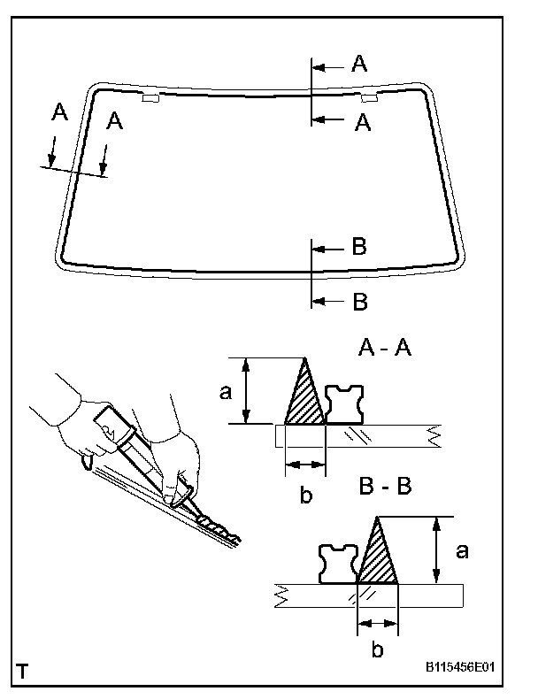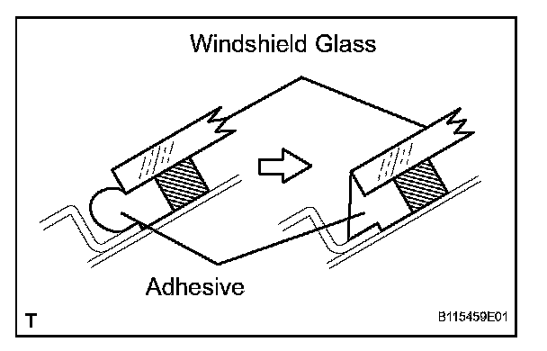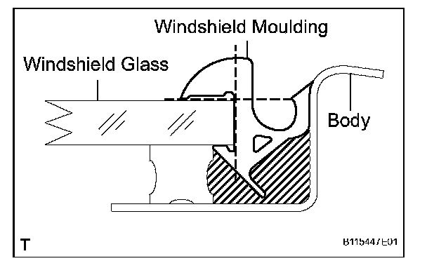 a. Apply adhesive to the moulding installation area between the glass and body.