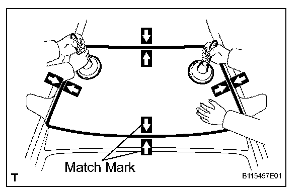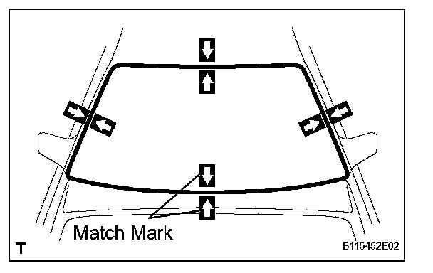 2. Place matchmarks on the glass and vehicle body on the locations indicated in the illustration.
