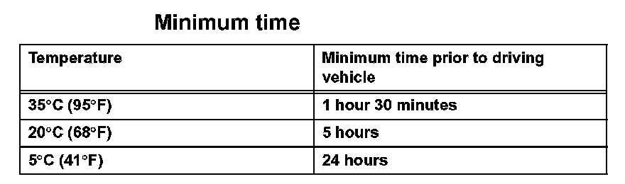 NOTE: Do not drive the vehicle for the amount of time written in the table.