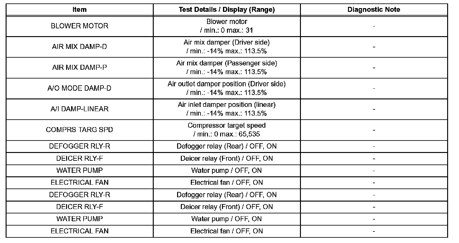 d. Enter the following menus: DIAGNOSIS / OBD/ MOBD / AIR CONDITIONER / ACTIVE TEST.