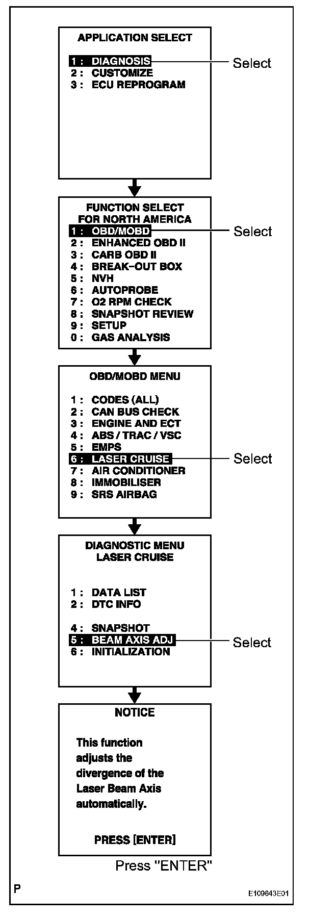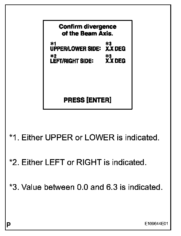 - Pressing the "ENTER" key will make the ECM transfer to BEAM AXIS ADJUSTMENT MODE.