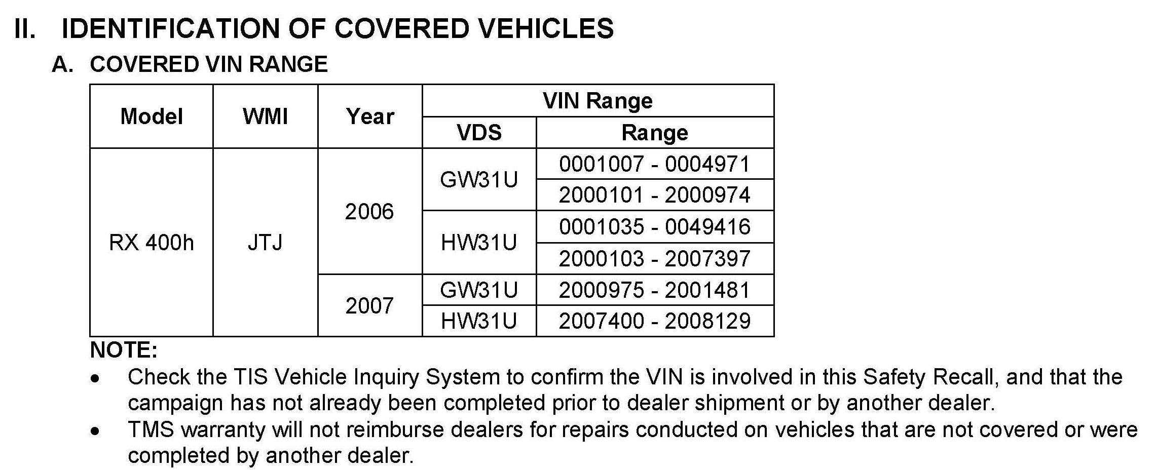 RX 400h AWD V6-3.3L (3MZ-FE) Hybrid