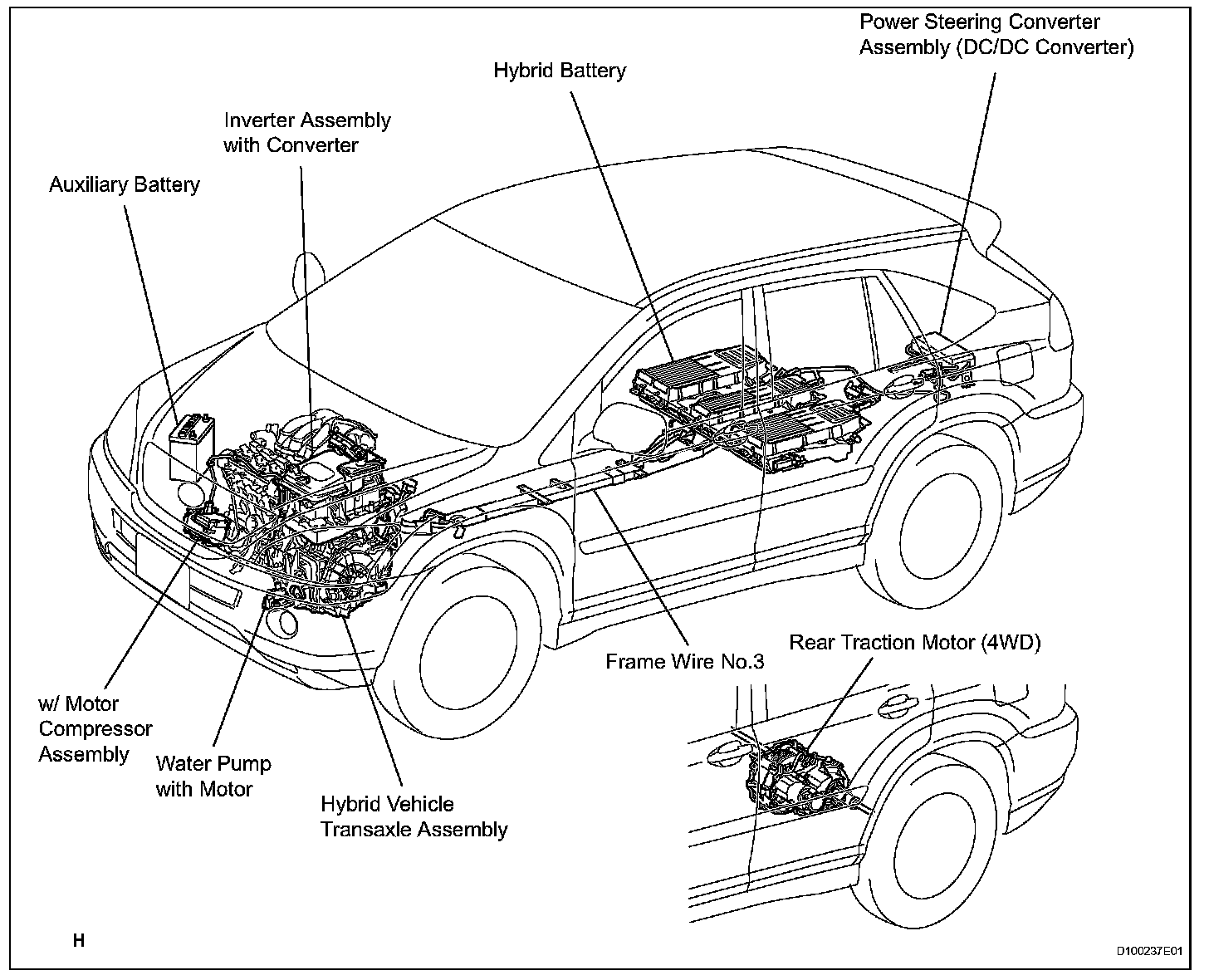 NOTE: The RX400h hybrid system contains a 288V high voltage system with a strong alkali solution of potassium hydroxide. Be sure to follow the instructions in this manual to handle the system correctly. Failure to do so may result in serious injury or electrocution.