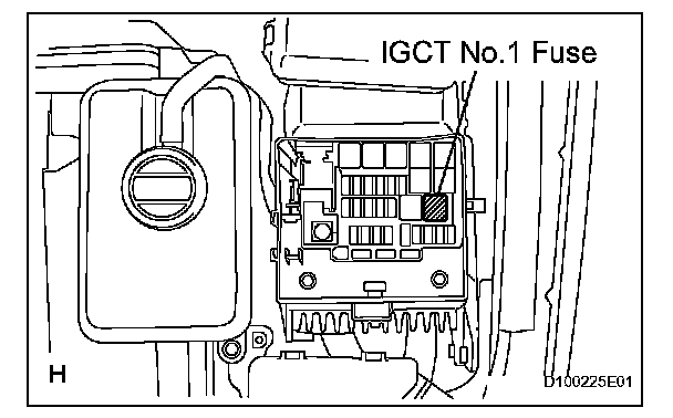 HINT: If the ignition switch cannot be turned off, remove the IGCT No.1 fuse from the HV relay block or disconnect the cable from the negative terminal of the auxiliary battery.