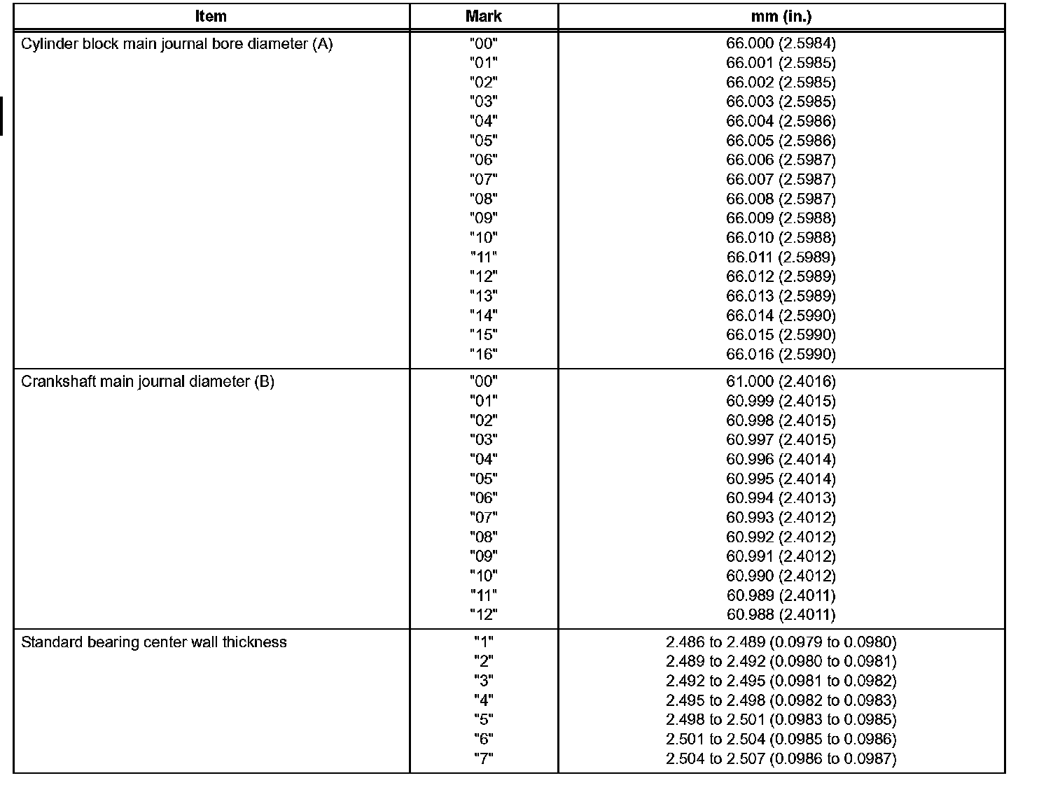 No. 1 & No. 2 Journals 0.05 mm (0.0020 inch)