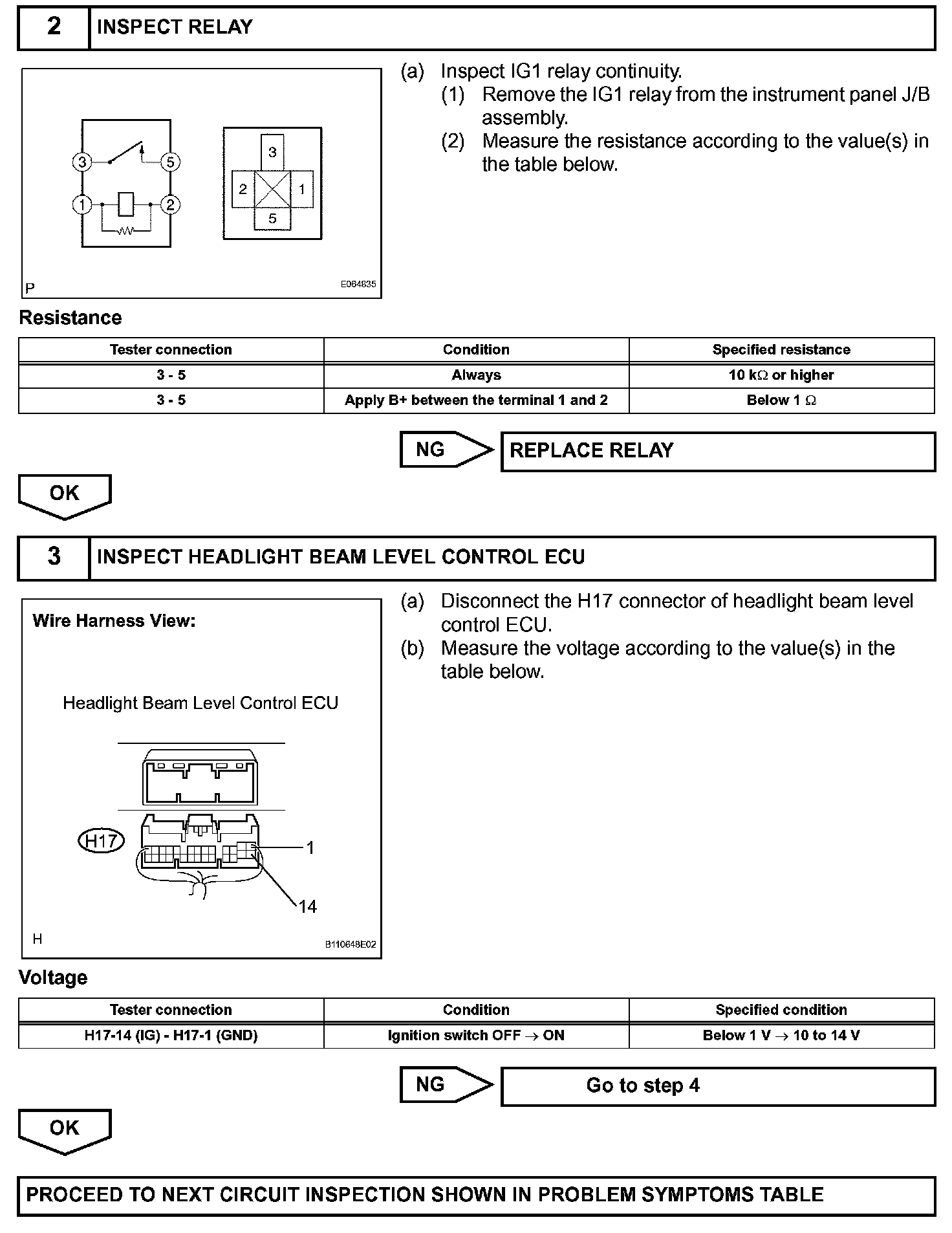 Headlight Beam Level Control ECU Power Source Circuit