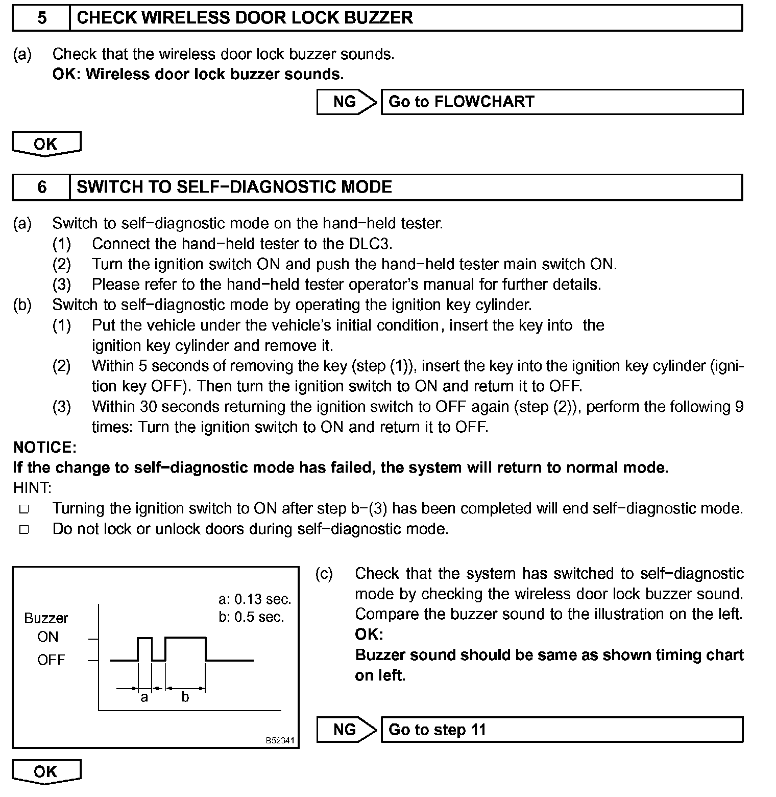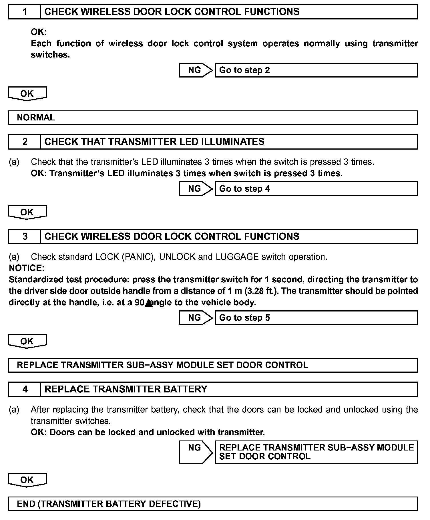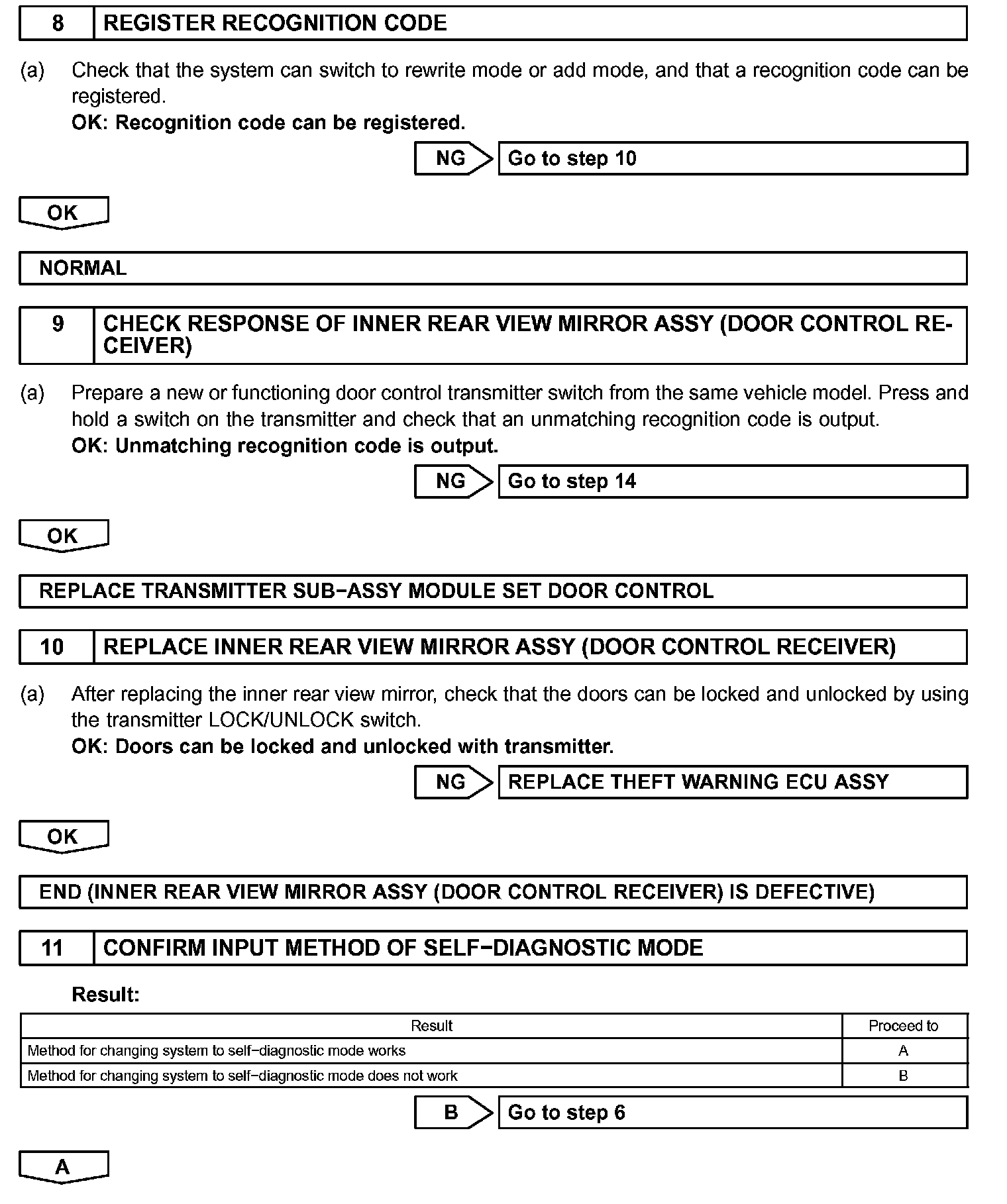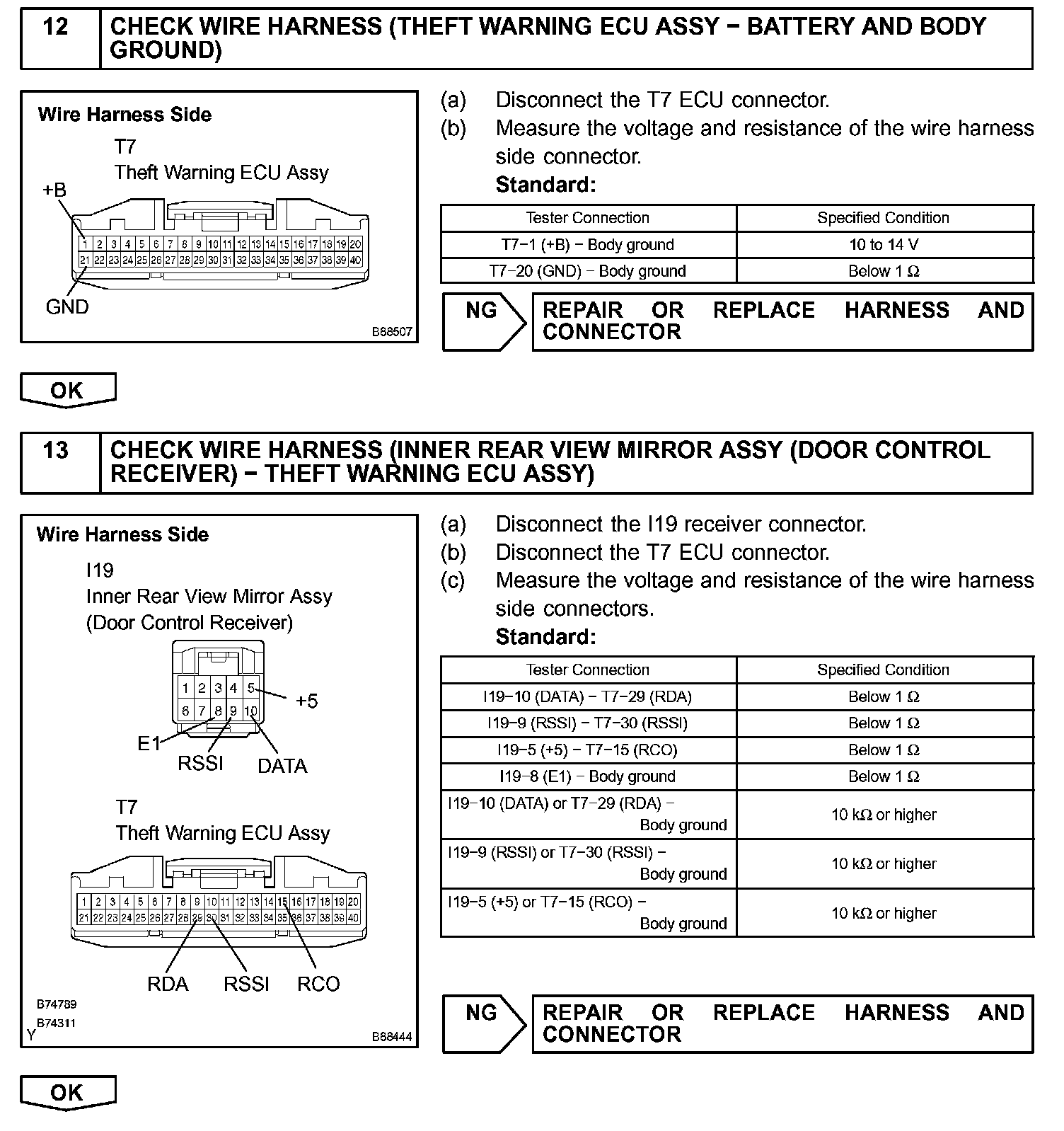 The signal from the transmitter is input to the theft warning ECU through the RDA line. The status of the RDA and RSSI lines are diagnosed by the theft warning ECU. If the wireless door lock control system fails, check for DTCs to confirm if the cause is the RDA and/or RSSI line.