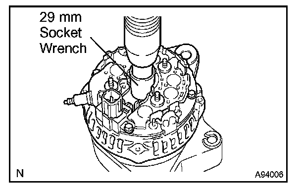 b. Using a 29 mm socket wrench and press, slowly press in the coil.