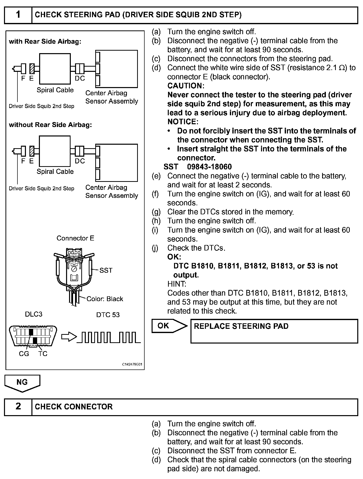 DTC B1810/53 Short in Driver Side Squib 2nd Step CircuitDESCRIPTION