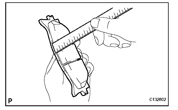 If the pad lining thickness is less than the minimum, replace the brake pads.