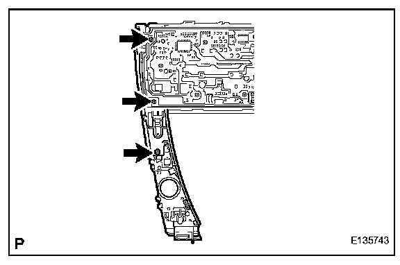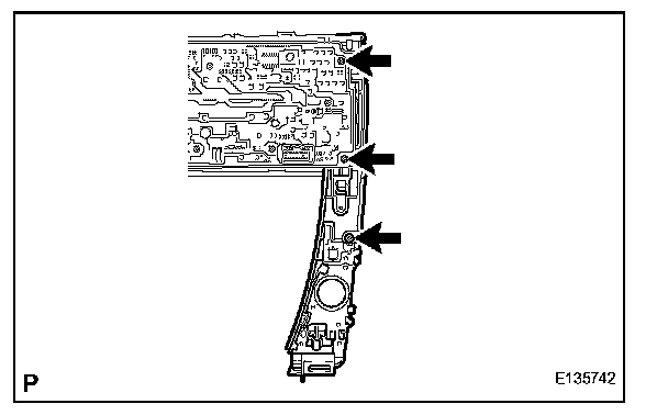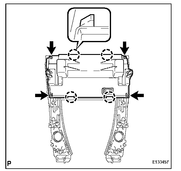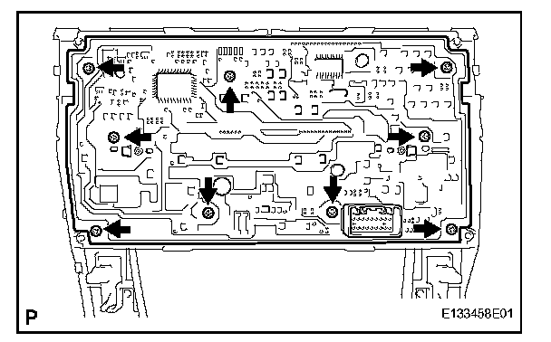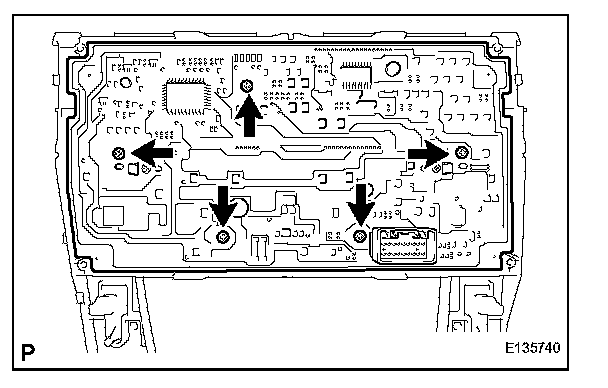 NOTE: When disassembling the center cluster module control assembly, eliminate static electricity by touching the vehicle body to prevent the components from being damaged.