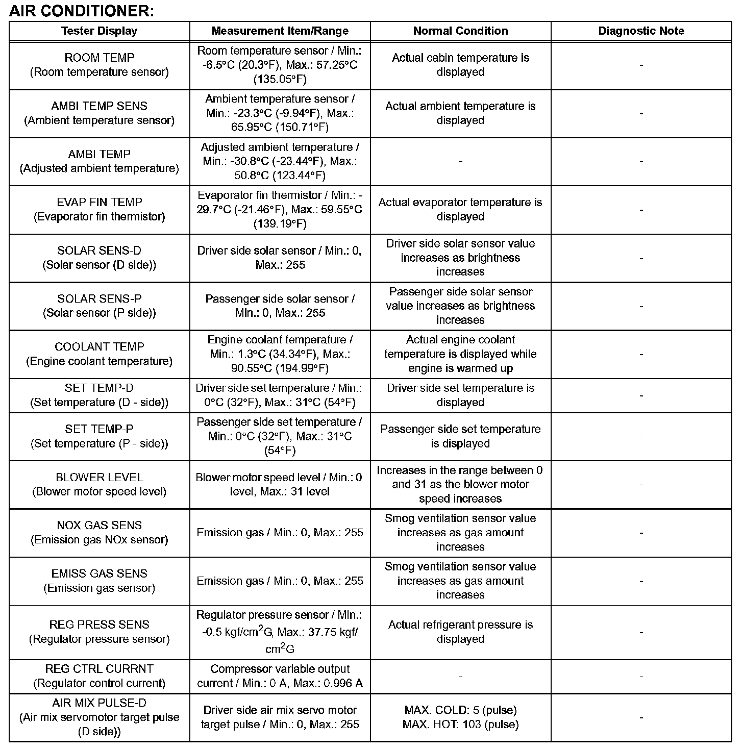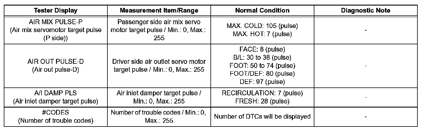 d. Enter the given menus: DIAGNOSIS / OBD/ MOBD / AIR CONDITIONER / DATA LIST.