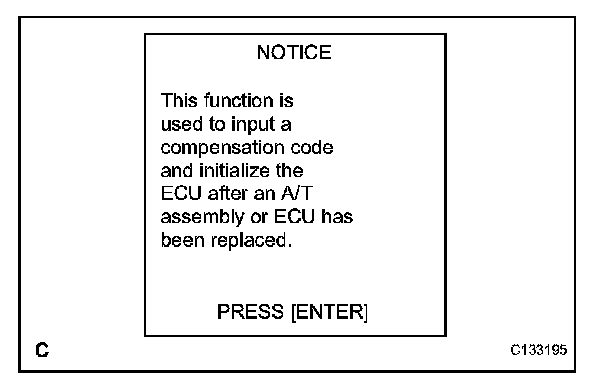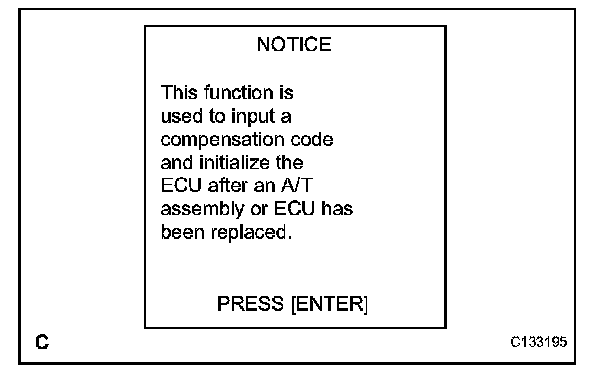 NOTICE: If an incorrect transaxle compensation code is input into the TCM, shift shock will occur.
