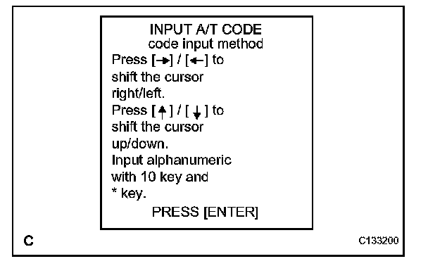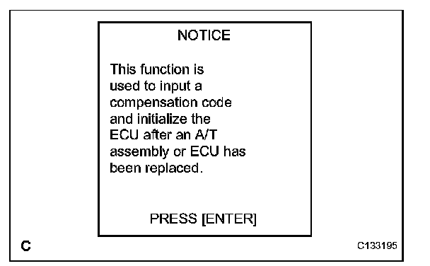 ^ When the TCM is replaced, the existing transaxle compensation codes must be input into the new TCM (Proceed to step 2).