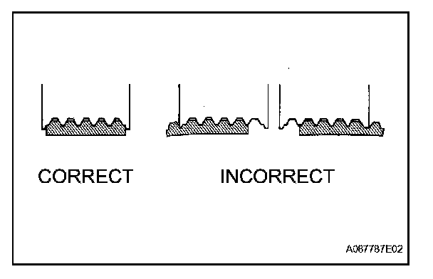 (a) Idle the engine and then stop the engine. Check that the drive belt is between the edges of the idler pulley.