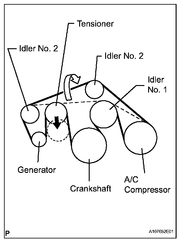 (a) Set the V-belt to everything except the idler pulley No. 2, as shown in the illustration.