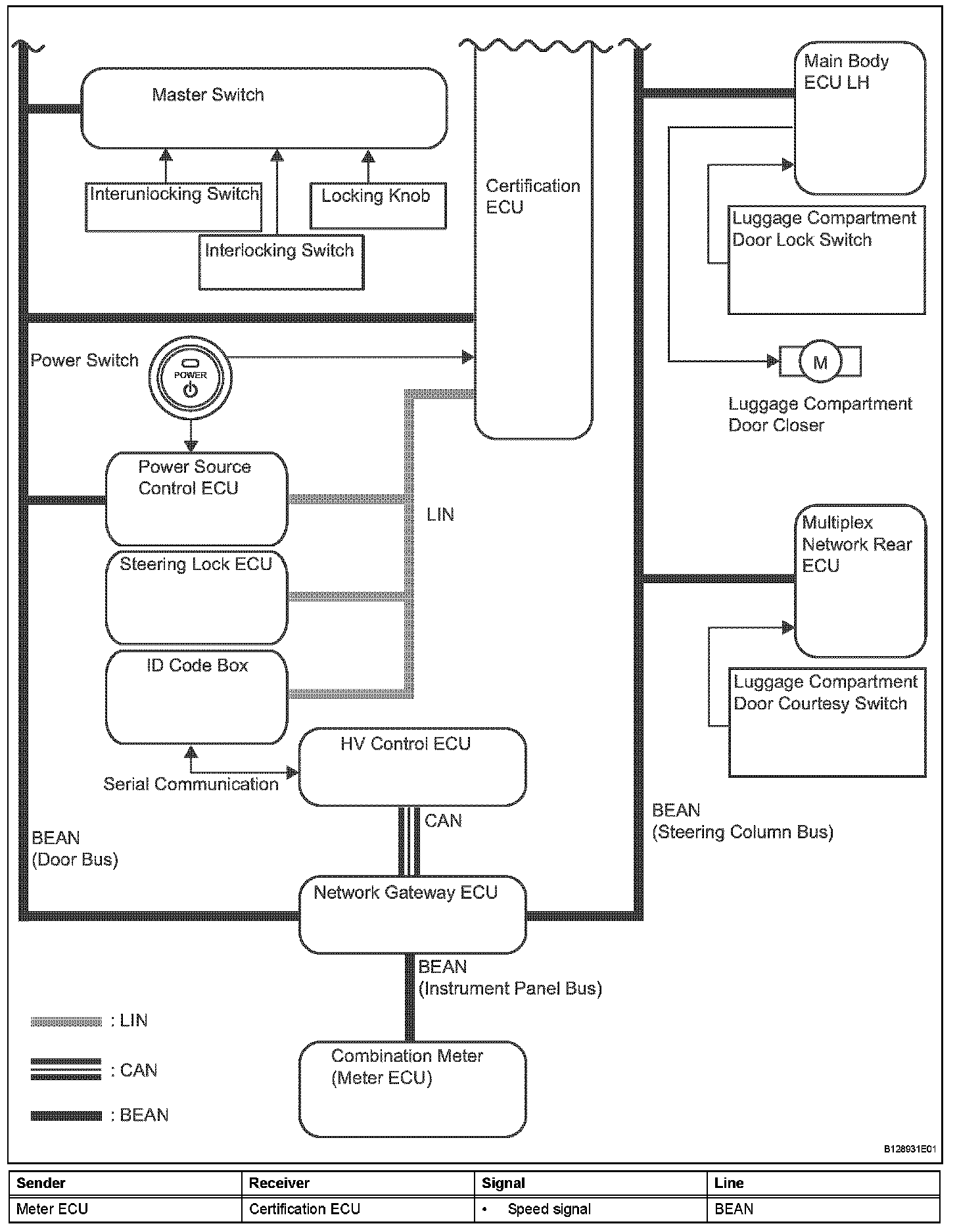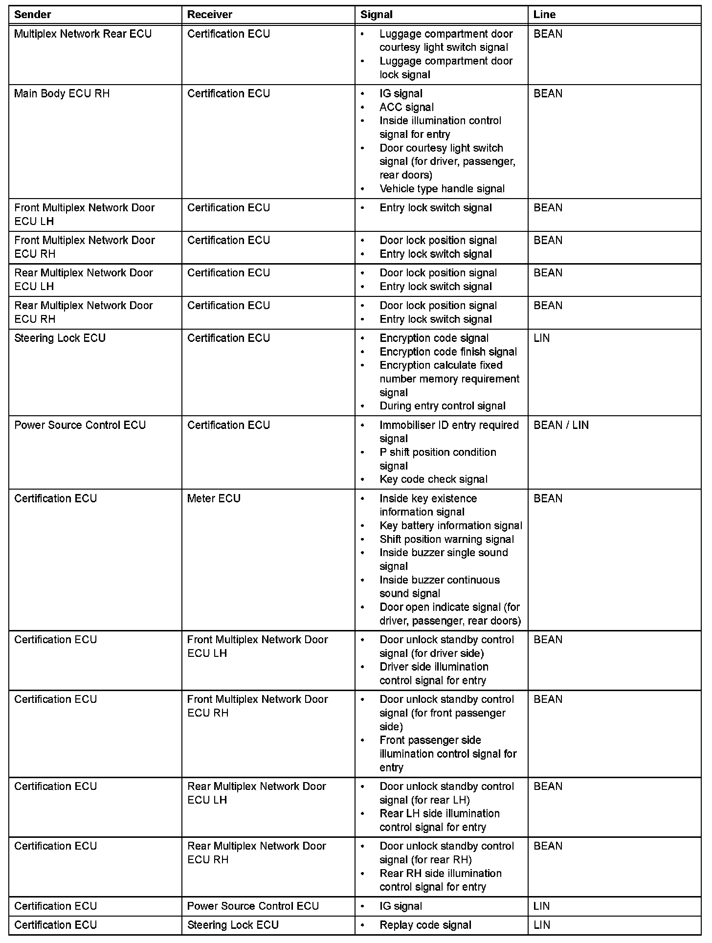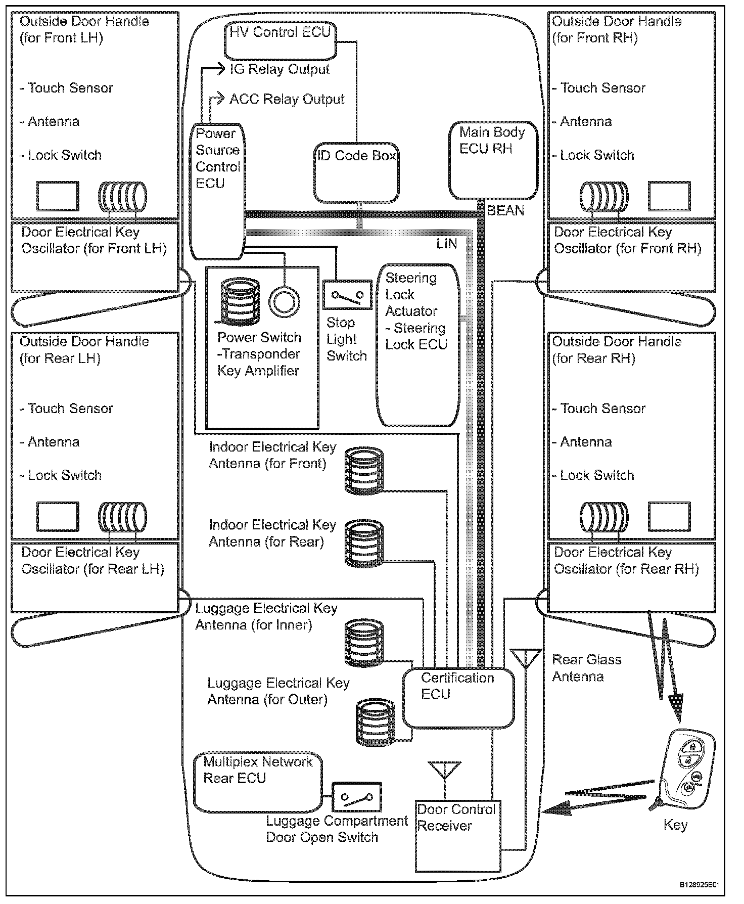 - This system is controlled by the certification ECU. When the certification ECU detects the presence of the key in one of the detection areas, it identifies and checks the ID code, and outputs operation signals to the related ECU in accordance with their functions.