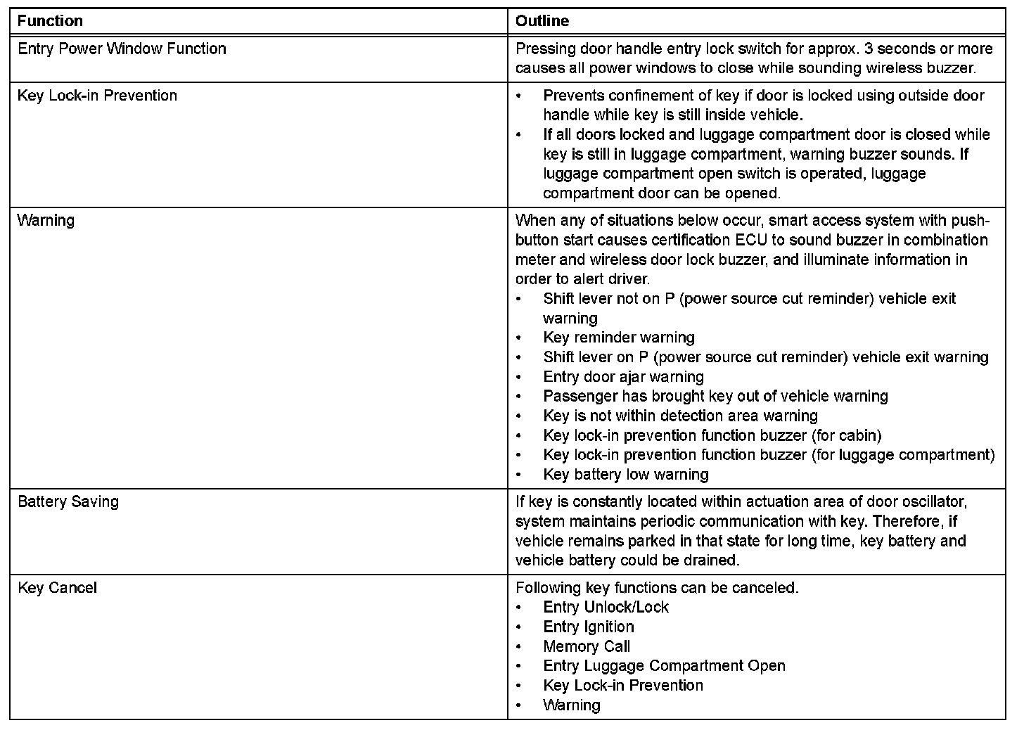 a. The smart access system with push-button start has the following functions.
