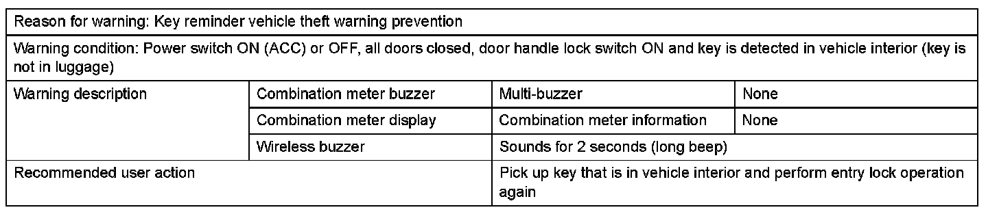Key lock-in prevention function buzzer (for luggage compartment)