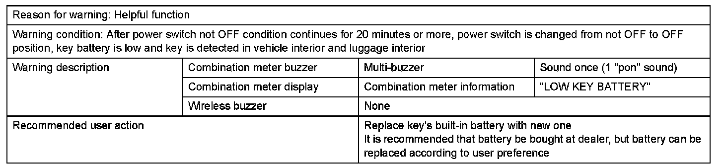 Key battery low warning