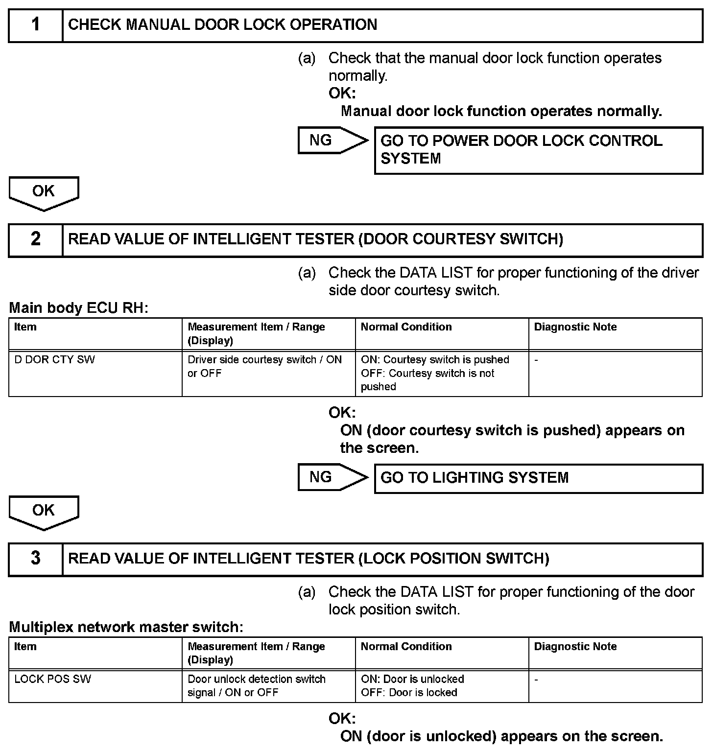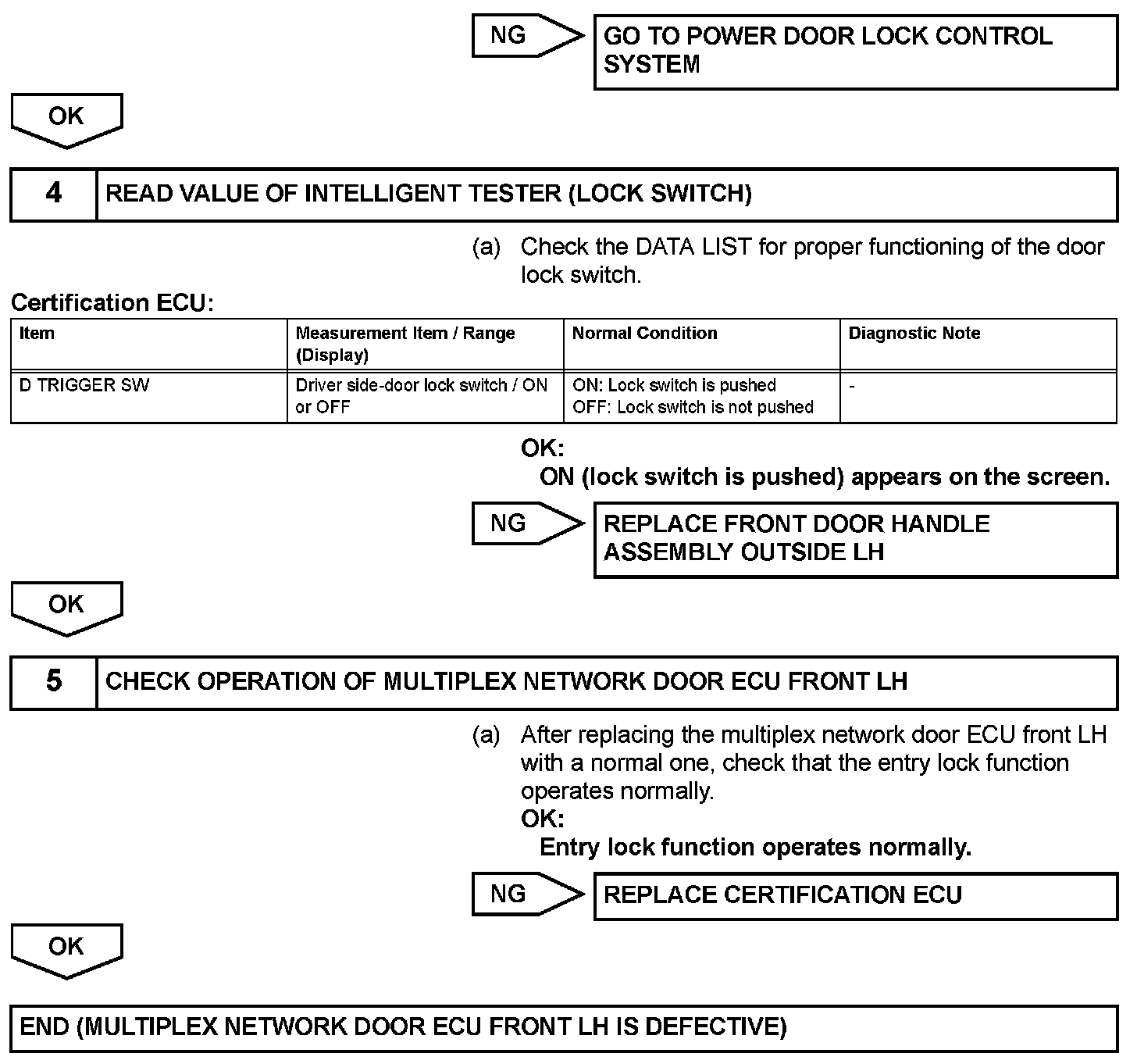 Driver Side Door Entry Lock Function does not OperateDESCRIPTION