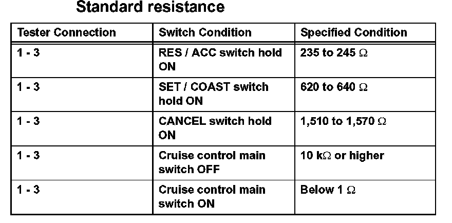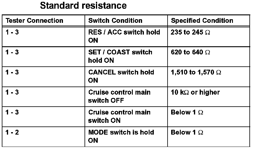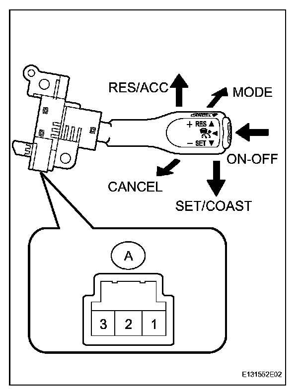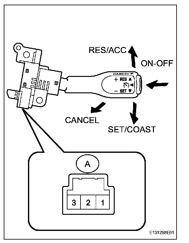 2. INSPECT CRUISE CONTROL MAIN SWITCH (w/o Dynamic Radar Cruise Control System)
