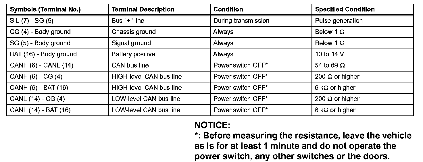 If the result is not as specified, the DLC3 may have a malfunction. Repair or replace the harness and connector.