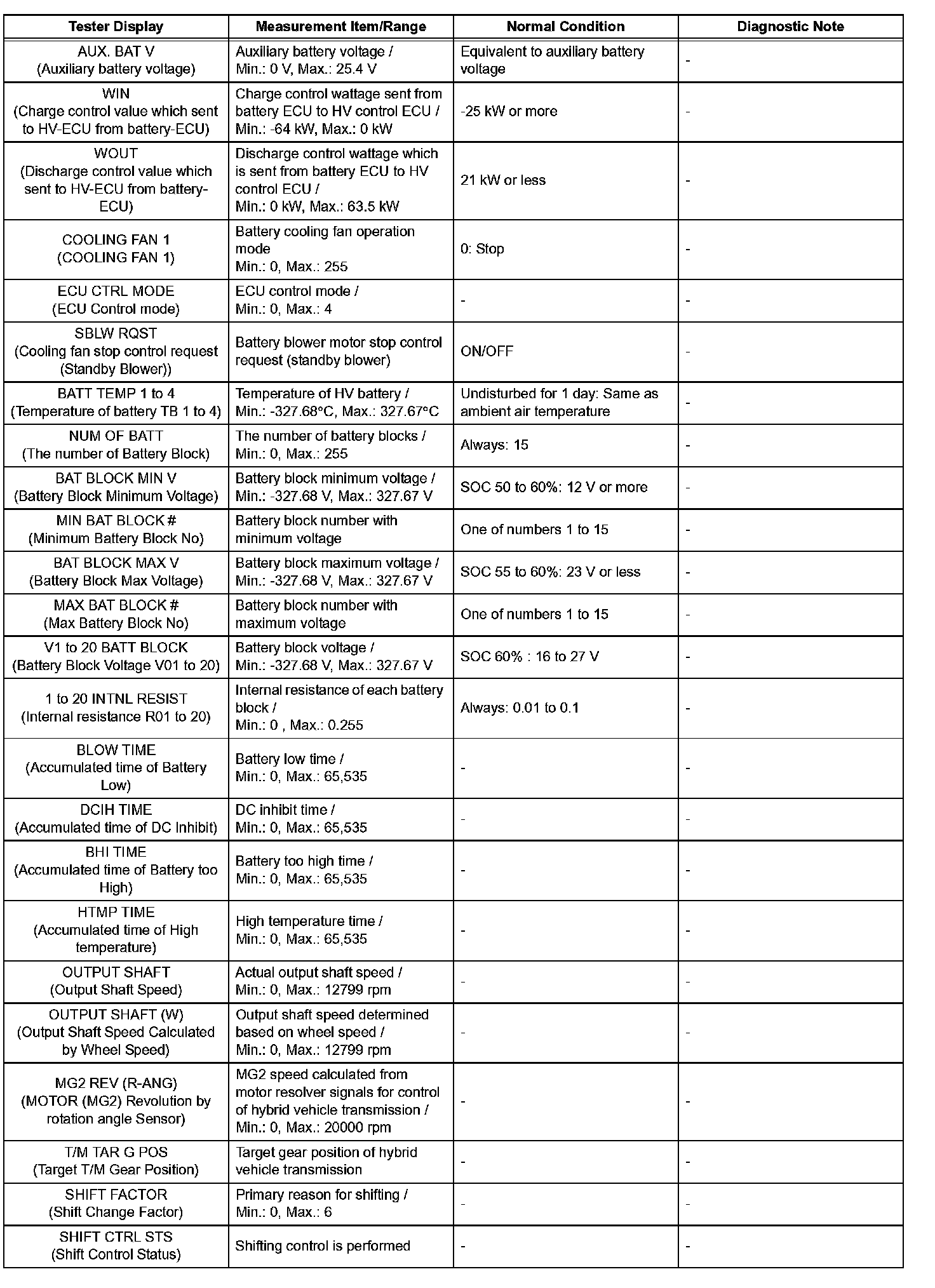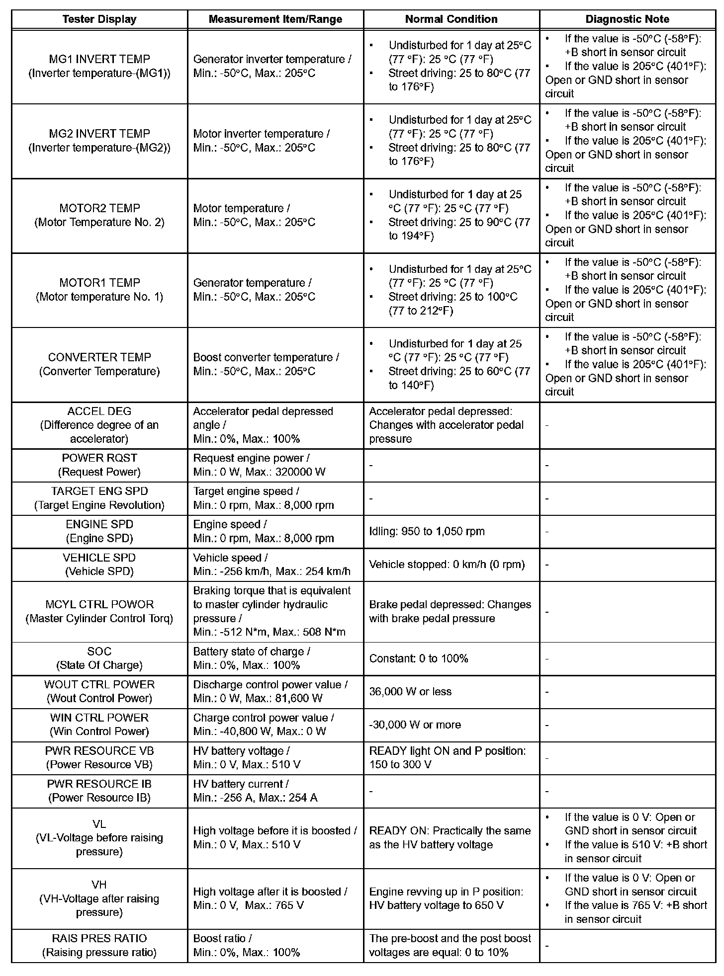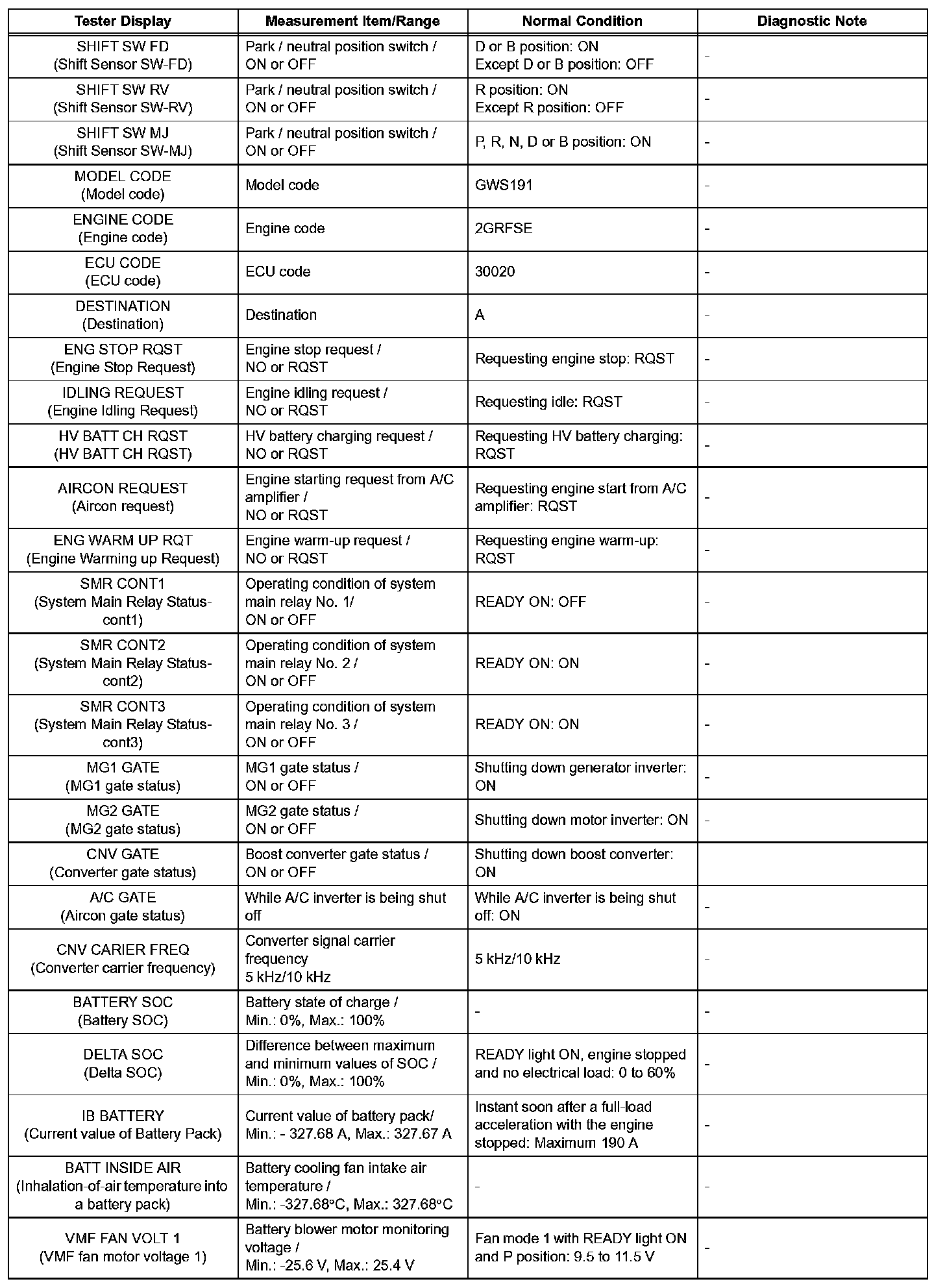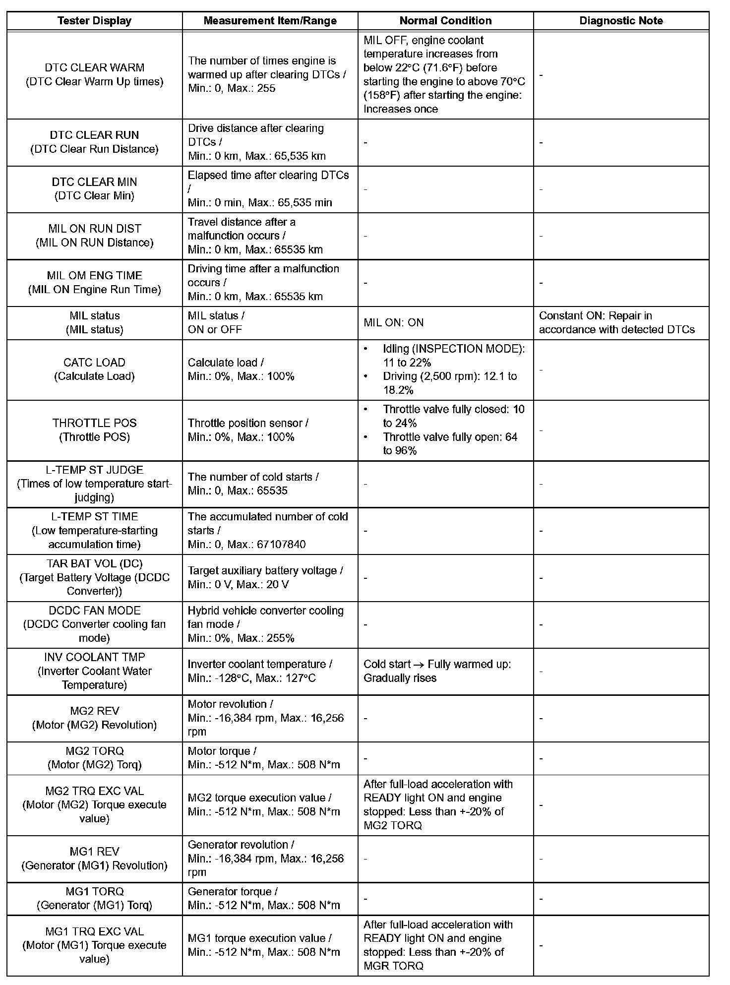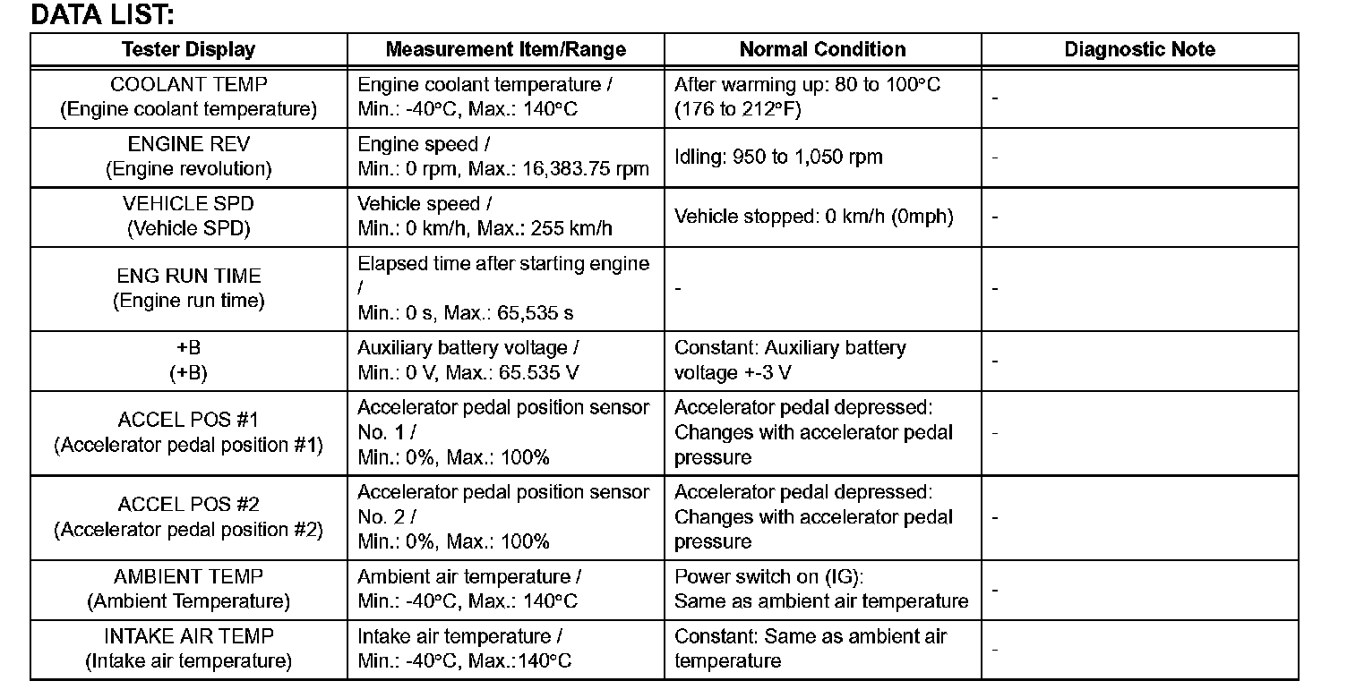 - Some data list values may vary significantly if there are slight differences in the environment in which the vehicle is operating when measurements are obtained. Variations may also occur due to aging of the vehicle. Due to these considerations, it is not always possible to provide definite values to be used for judgment of malfunctions. It is possible that a malfunction may be present even if measured values are within the reference range.