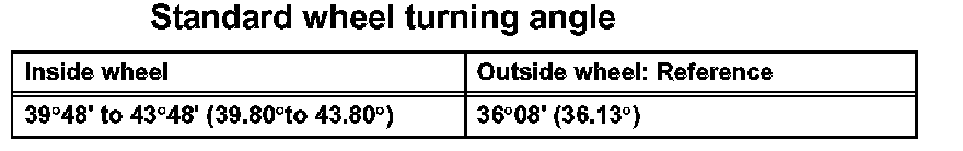 If the right and left inside wheel angles differ from the specified range, check the right and left rack end lengths.