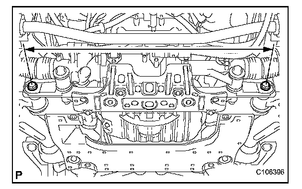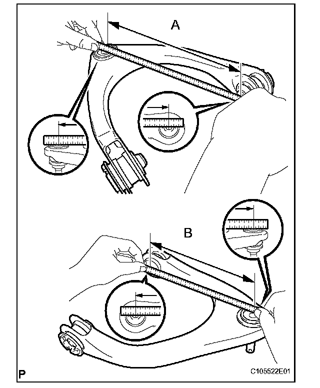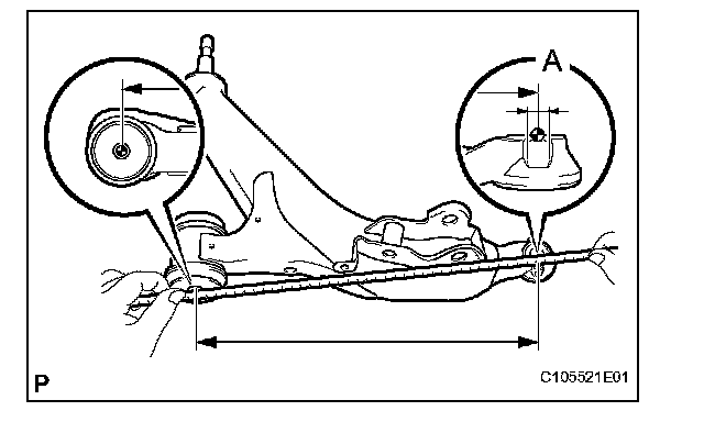 (1) Measure the dimension between the center of the installation bolts of the front lower suspension arm.