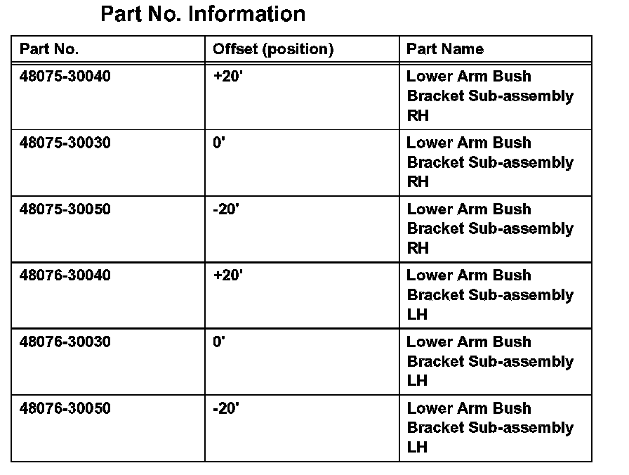 ^ The maximum tolerance of right and left difference for the camber and caster is 30' or less.