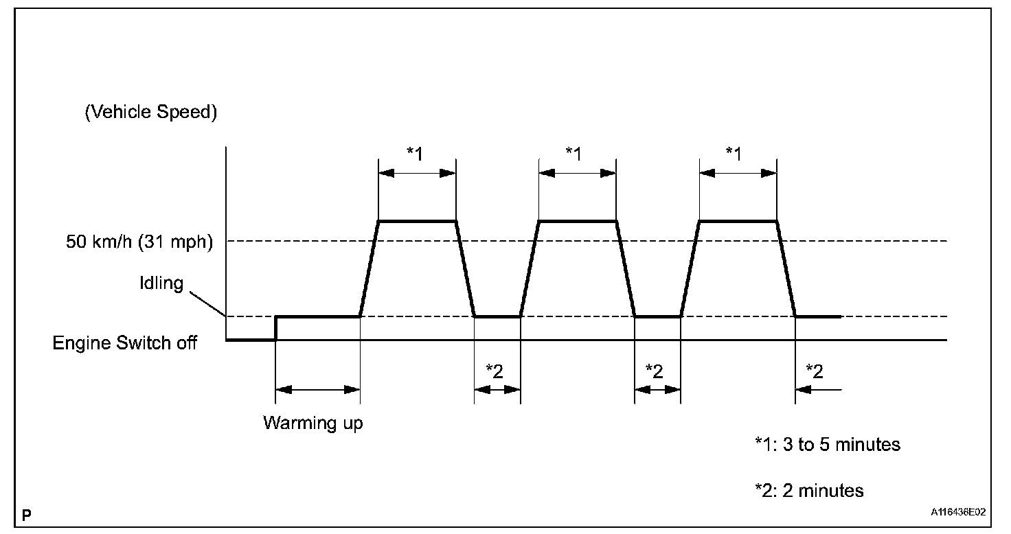 6. Drive the vehicle at 50 km/h (31 mph) or more for 3 minutes or more *1.