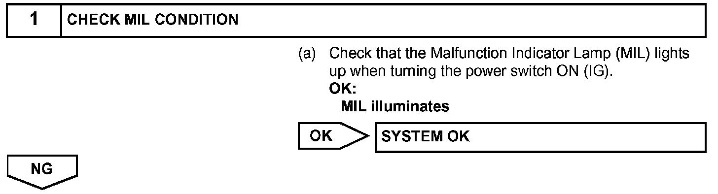 HINT: Under normal conditions, the MIL is illuminated for several seconds when the power switch is first turned ON (IG). The MIL goes off when the engine is started.
