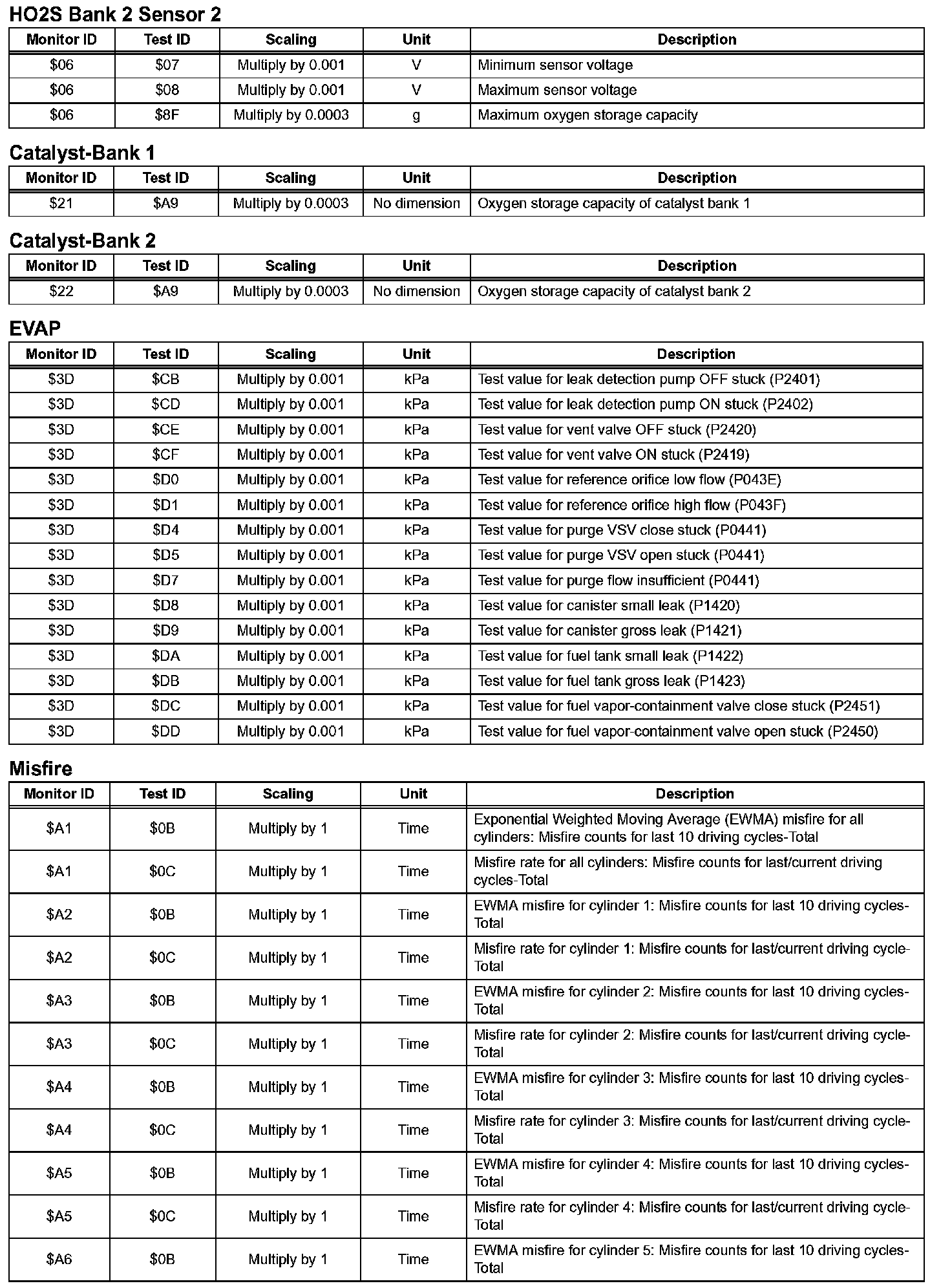 If you use a generic scan tool, multiply the test value by the scaling value listed.