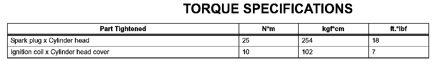 Ignition - Torque Specifications: