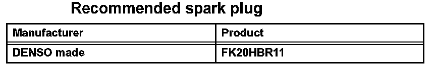 Electrode gap for a new spark plug: 1.0 to 1.1 mm (0.039 to 0.043 in.)