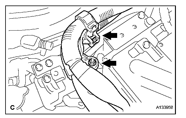 (m) Disconnect the 3 clamps and connector.