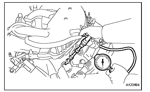 (1) Insert a compression gauge into the spark plug hole.