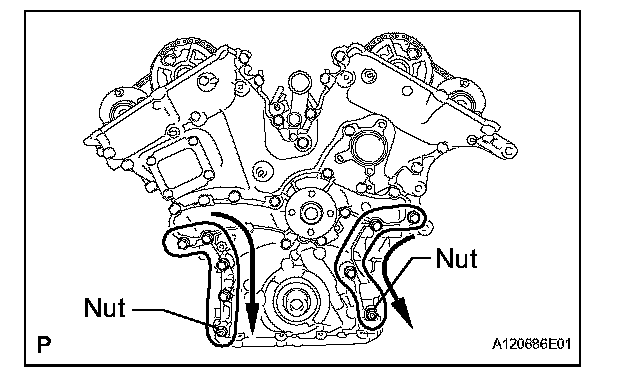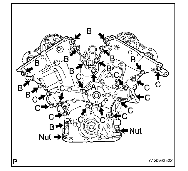 Tighten the 7 bolts and 2 nuts as shown in the illustration.
