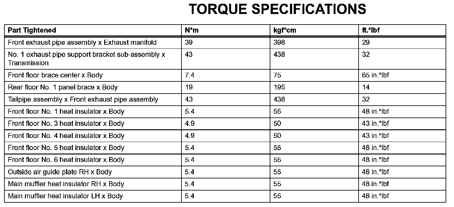 Exhaust - Torque Specifications: