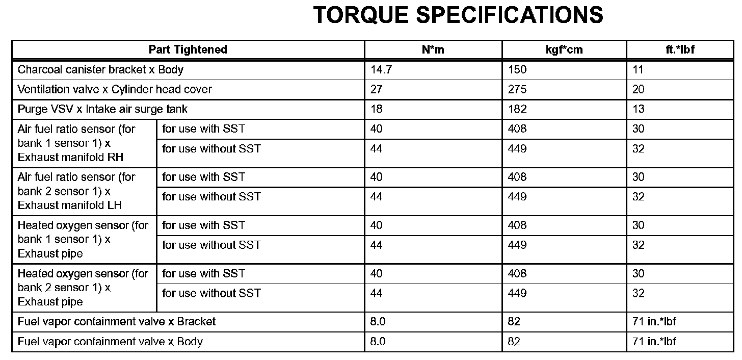 Emission Control - Torque Specifications: