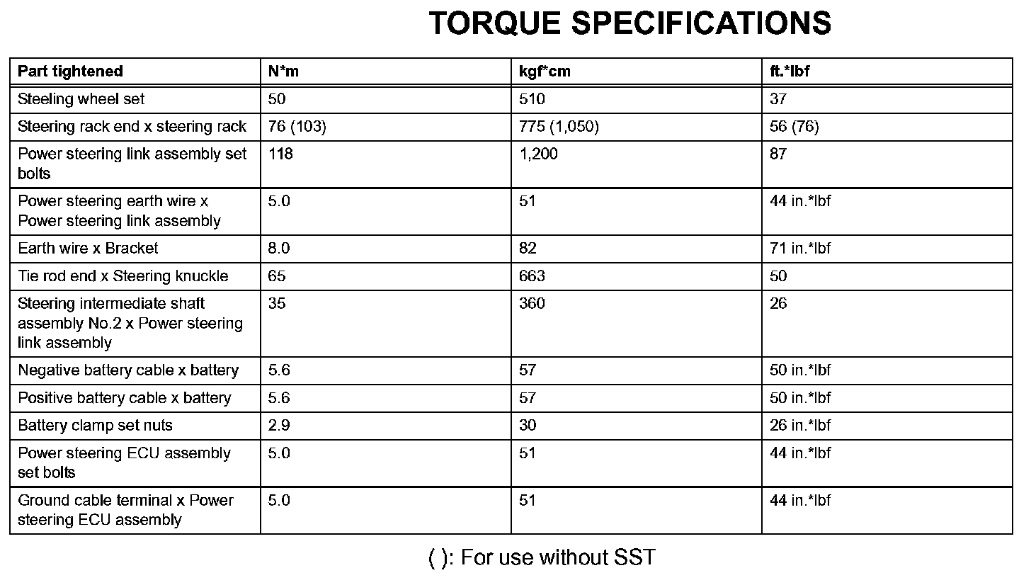 Power Steering - Torque Specifications: