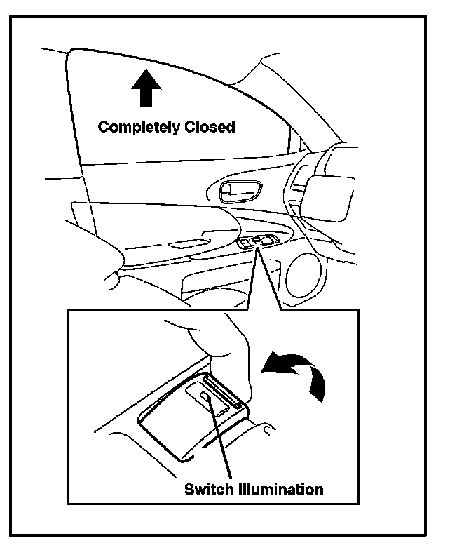 3. Pull up the driver's door power window switch until the window closes, and continue to hold it up for more than one second.