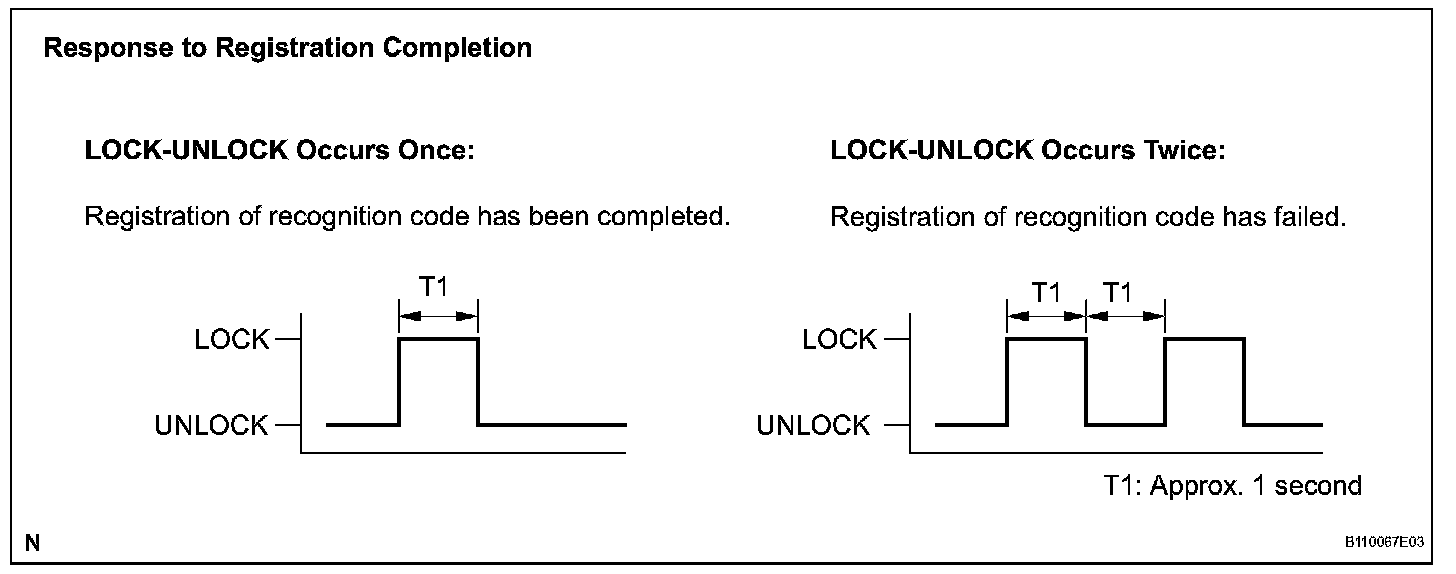 HINT: If the LOCK-UNLOCK operation is performed twice, registration of the recognition code has failed. Perform registration procedures from the beginning once again.