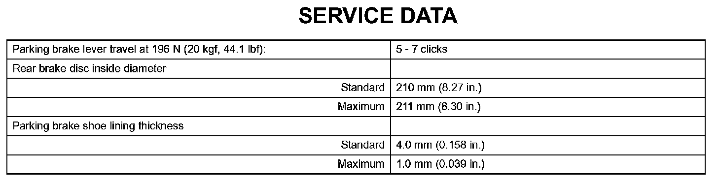 Parking Brake - Service Data: