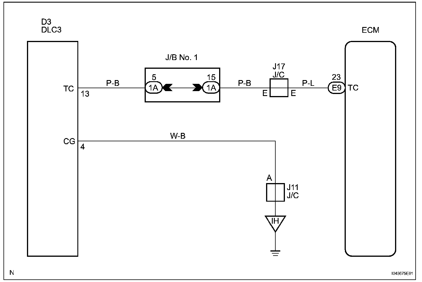 Connecting terminals TC and CG of the DLC3 causes the system to enter self-diagnostic mode. If a malfunction is present, DTCs will be output.