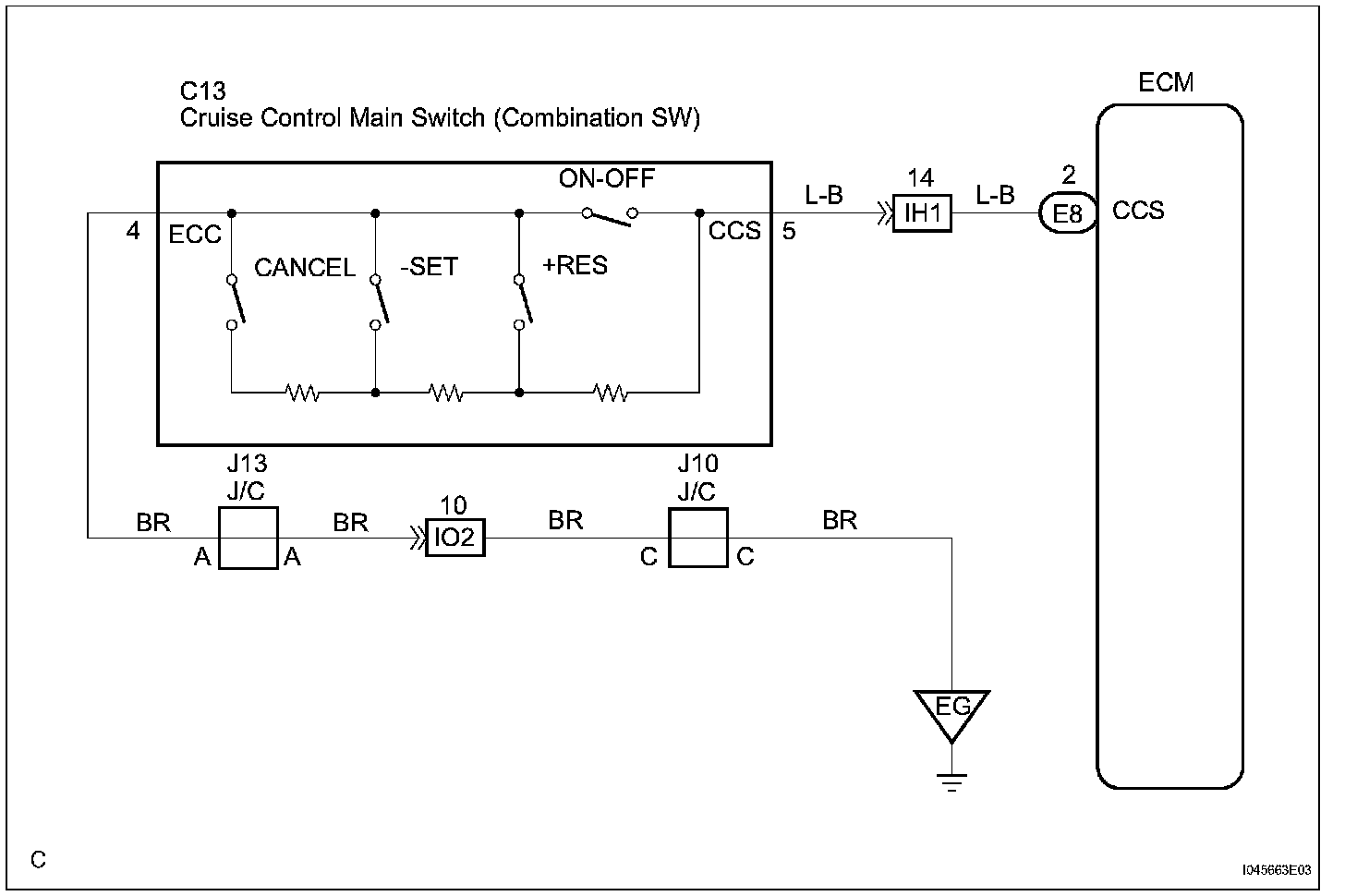 This circuit carries the -/SET, +/RES and CANCEL signals (each voltage) to the ECM.
