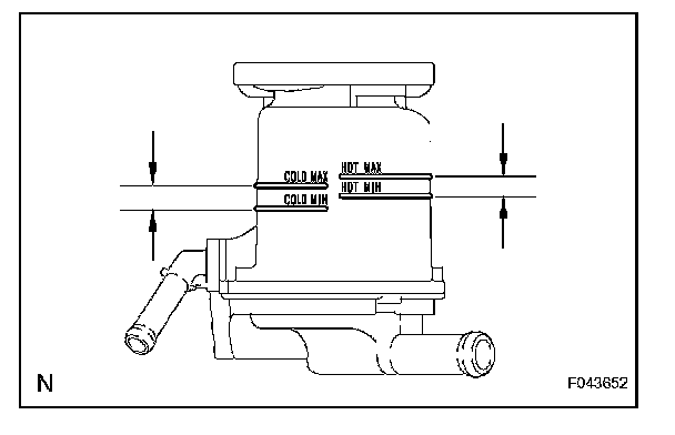(f) With the engine idling, measure the fluid level in the reservoir.