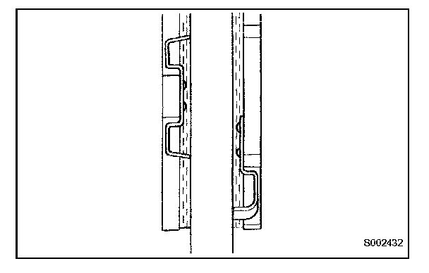 ^ If a squealing or scraping noise is heard from the brake while driving, check the pad wear indicator.